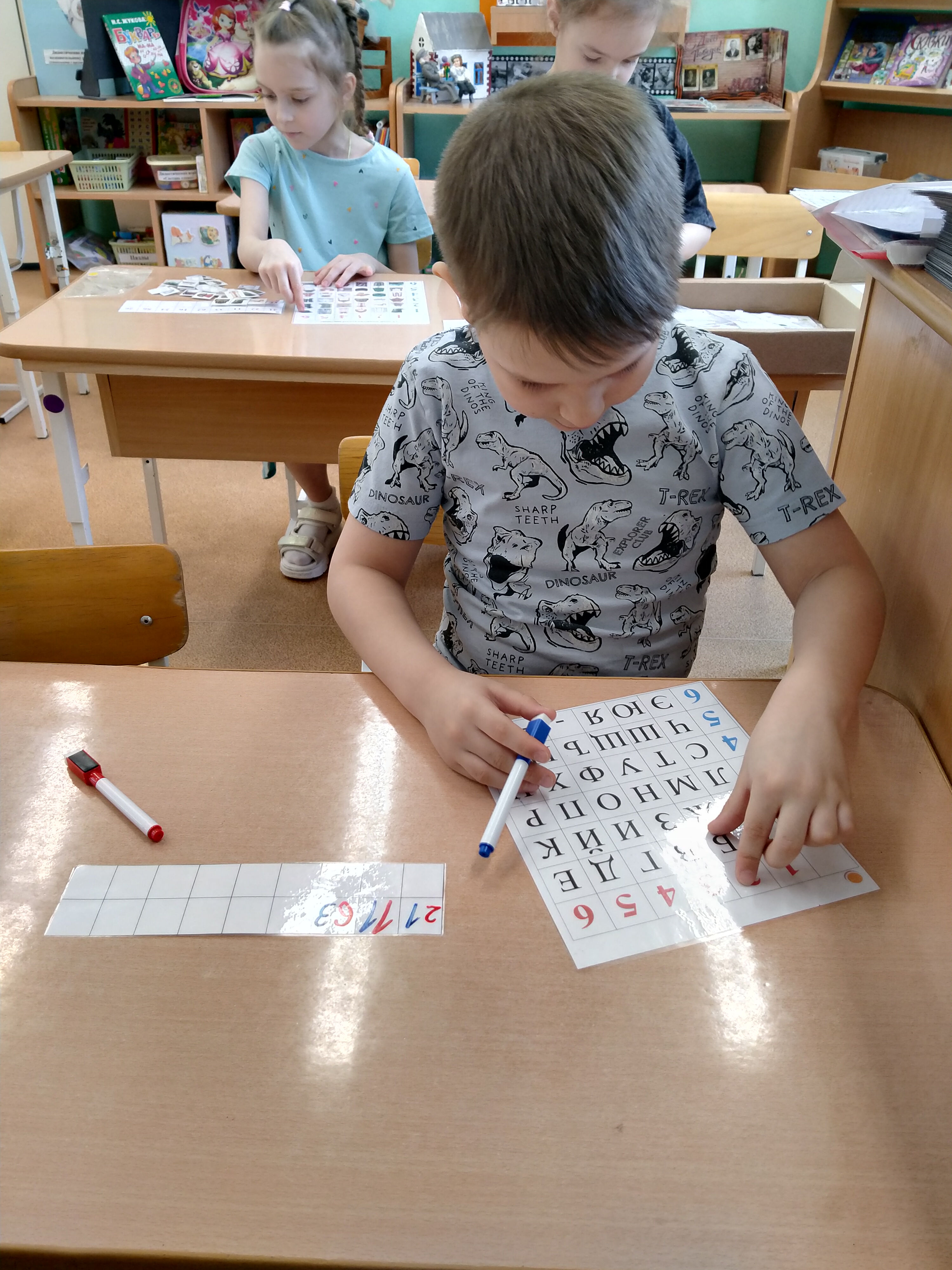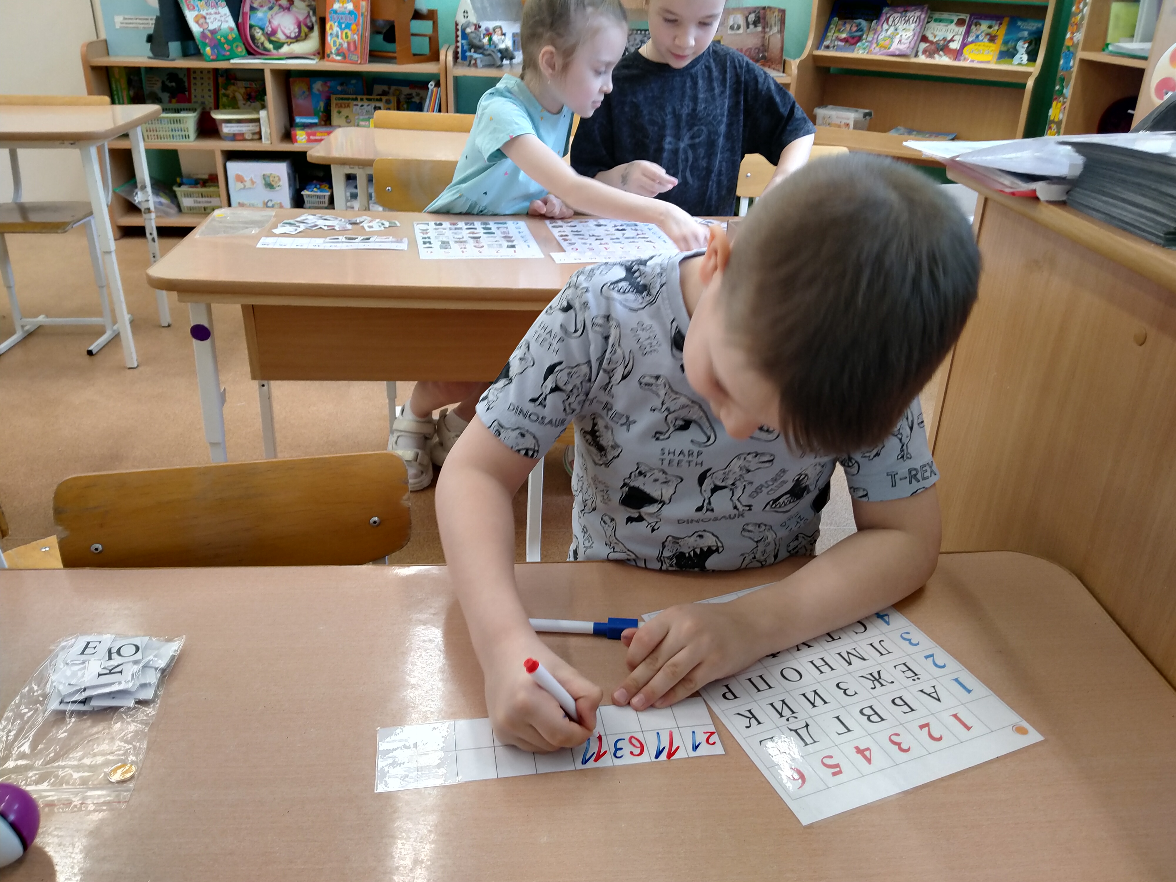 В игре представлено поле с пустыми ячейками. Ребенок может самостоятельно зашифровать свои картинки или слова, используя цветные фломастеры или картинки с предметами/ буквами.